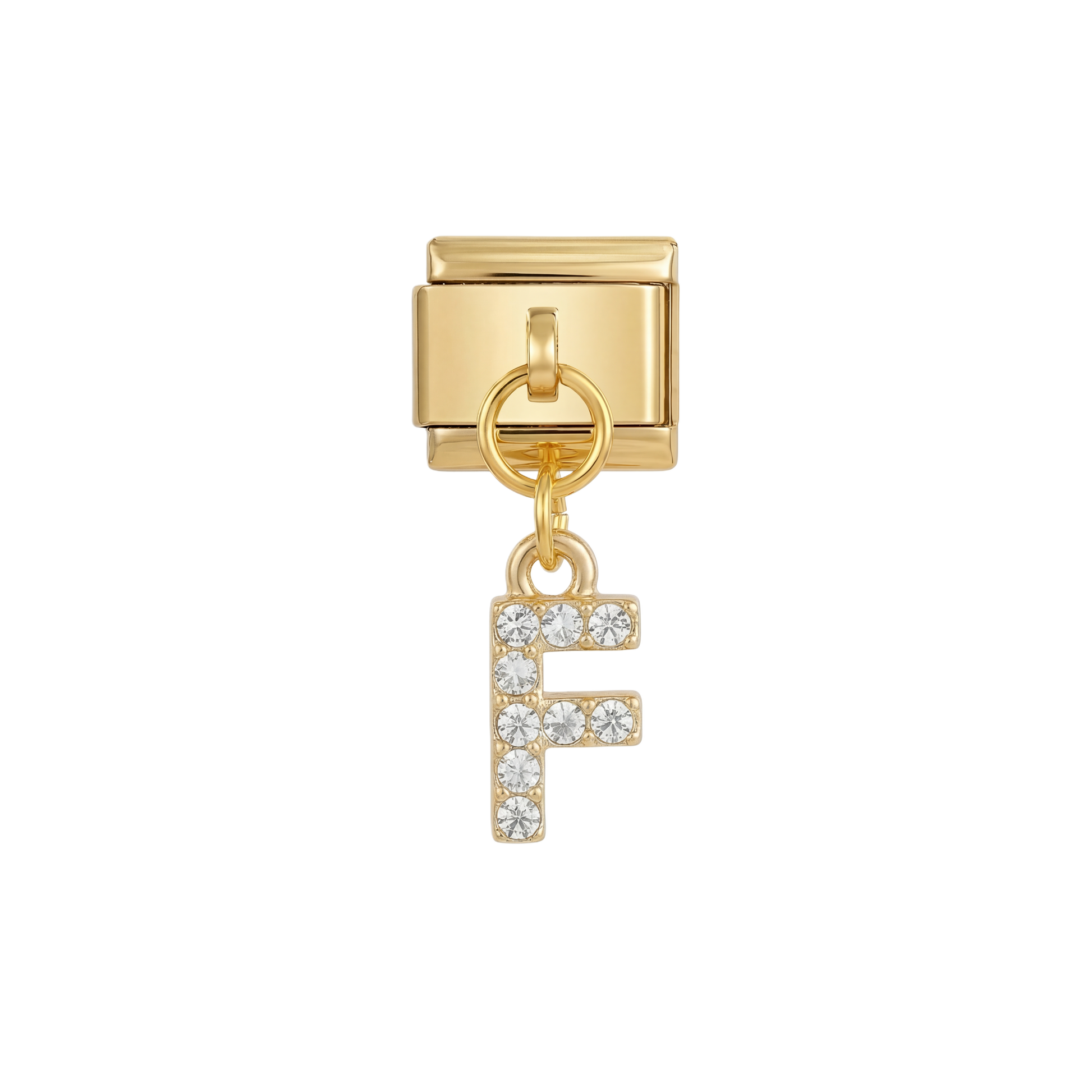 Letter F with stones, Hanging, on Gold